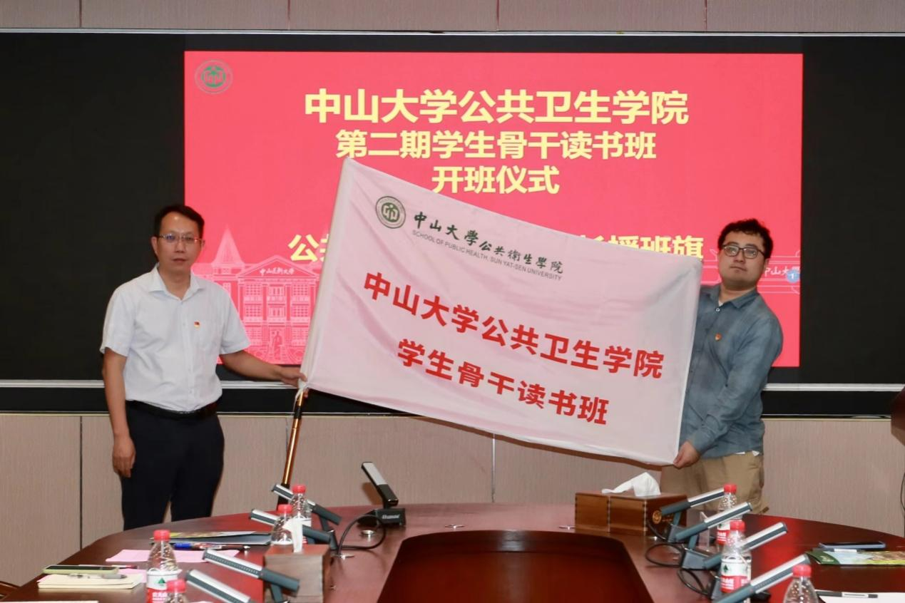 随后,夏敏院长为本期学生骨干读书班授班旗。