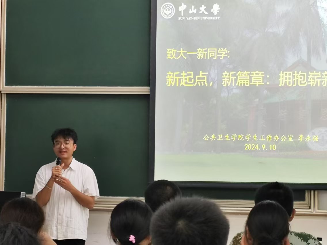 为引领新生树立崇高的世界观、人生观与价值观,点燃同学们爱党爱国、爱校荣校的炽热情怀,激励他们矢志不渝地投身于医学事业,立志成为社会的栋梁之才,中山大学公共卫生学院于8月28日至10月9日期间,以“价值引领、学术启迪、行为规范、心理健康、职业规划”为核心,开展了2024级本科新生入学教育系列活动,旨在营造一个和谐进取、健康向上的校园文化氛围。