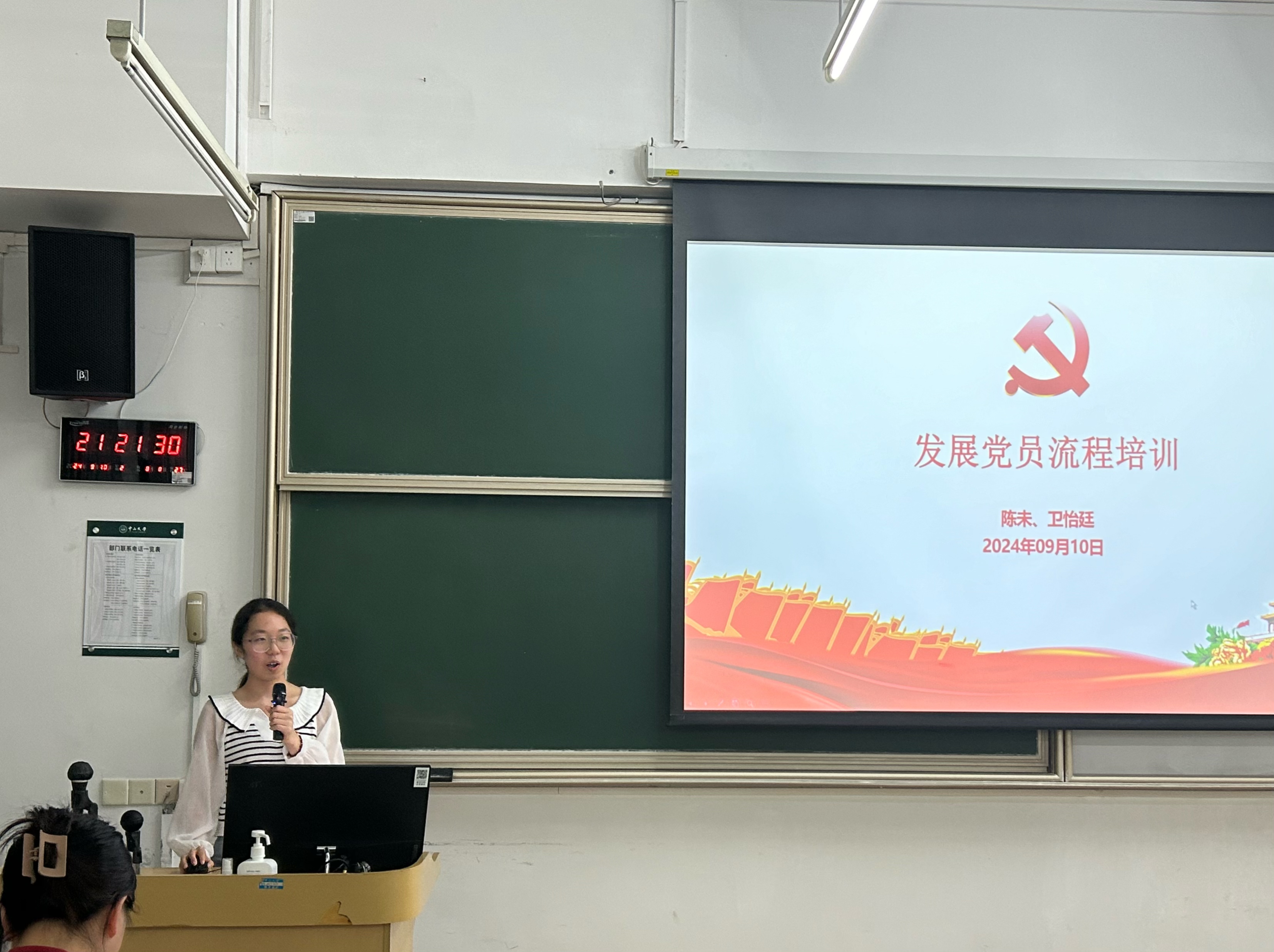 9月10日晚上,学院本科生第一党支部副书记陈未同学、第二党支部副书记卫怡廷同学、团委组织部第一召集人梁晓琳同学,为新生开展了入党入团教育。在这堂课中,同学们认识了优秀的中共党员们,思考为什么要入党入团,了解了中共党员及共青团员的申请和培养流程。课后,同学们纷纷撰写入党申请书或入团申请书,积极向党组织和团组织靠拢,赓续中大红色基因。