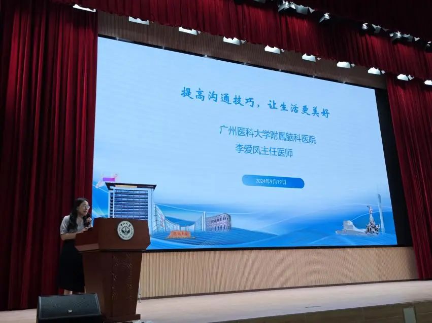 9月19日晚,广州医科大学附属脑科医院的李爱凤主任医师带来了题为《掌握沟通技巧,开启美好人生》的精彩讲座。通过趣味横生的现场情景模拟与生动形象的演绎,她阐释了沟通在生活中的重要性,指出无效沟通的负面影响,并传授了高效沟通的秘诀,鼓励同学们用沟通的力量点亮人生的每一个角落。