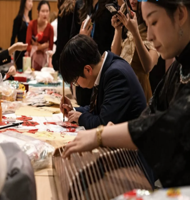 会议主办方于10月29日晚举办了丰富多彩的全球文化体验活动(Global Experience),通过一方美食、一段歌舞、一个微笑,便能瞬间跨越语言与地域的隔阂,触摸到彼此灵魂中最本真的热情与友善。我院学生准备了我校百年校庆纪念书签赠予他国参会者,刘凯伦同学还与其他学校的同学一起展示了书法作品,并作为礼物送给了对中国书法感兴趣的参会者。全球文化体验活动给参会者留下了深刻的印象,增进了不同文化之间的相互理解和尊重,促进了不同国家参会者的友好交流,展示了人类文明的多样性与生命力。